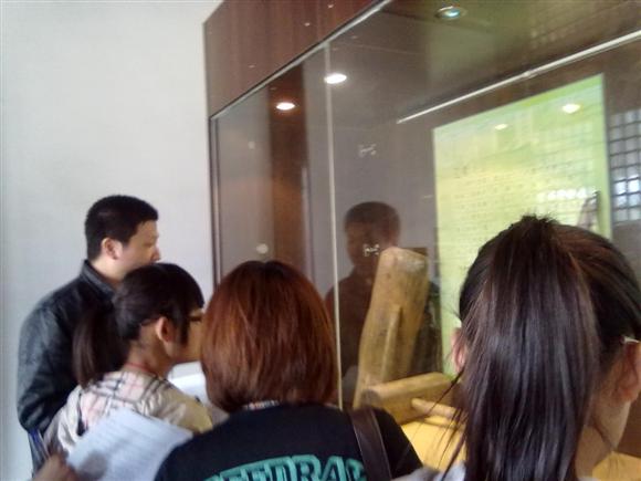 在他们抵达后,培训正式开始。首先,宝船厂的工作人员带领志愿者们熟悉了宝船厂遗址的整体布局图,并为他们简要介绍了宝船厂的历史,接着,志愿者们跟着工作人人员一同参观了仿真的“郑和钟”,钟上斑驳的锈迹见证了它的历史。随后,工作人员又带领志愿者们参观了极具历史意义的出土文物,在一间间文物展厅中徜徉,志愿者们感受到了历史的雄浑壮阔。