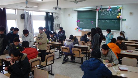 8点半,棋艺大赛正式开始。教室中,参赛选手们相对而坐,或苦思冥想,或淡定从容;时而被对手的进攻逼得眉头紧锁,时而又为暂时的得胜而舒心一笑。围观的同学们也全情投入,暗暗捏着把汗或是偷偷窃笑,期待着下一步棋的精彩。一旁的联络中心干事们井井有条地为选手们安排座位、登记分数,使得现场保持着愉悦热闹而又不失有序的良好氛围。