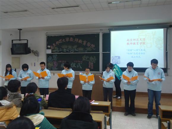 老师和同学们共同的热切期待中,教师院“德馨”心理气象站、“红烛”志协在学明楼502教室正式举行成立仪式。校心理健康教育咨询中心主任,学工处副处长周红老师、校团委副书记冷开振老师、黄色视频