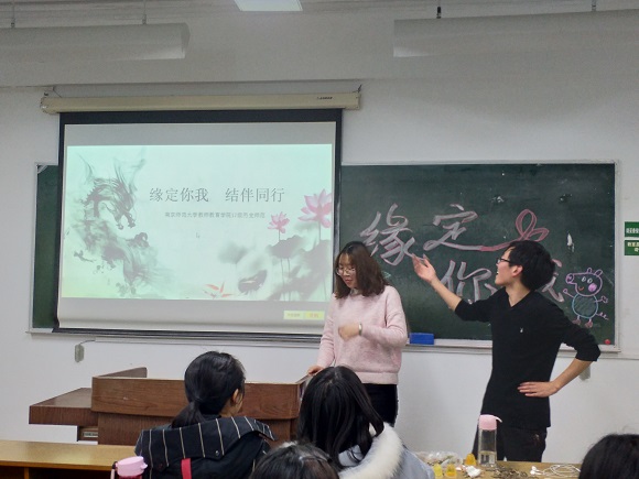 3月21日晚上,17级历史师范班同学于仙林校区学明楼309开展以“缘定你我”为主题的班级团辅活动,本次活动由心理气象员于亮同学和李慧雯同学共同主持,心理气象站张驰同学、罗志慧同学全程参与。