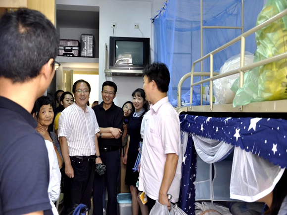 下午一点半,教师院党委书记张杰老师、院长杨作东老师、院党委副书记刘更生老师、副院长周晓静老师及各年级辅导员老师们特地前往仙林校区西区14栋宿舍看望2017级本科新生,受到了学生和家长们的热烈欢迎。