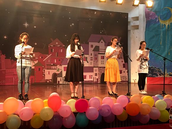 第一组同学组的朗诵主题是《青春永不褪色》,为我们带来了四首清新娟丽的小诗,正式拉开了此次活动的序幕。之后,各组上台朗诵,为观众带来了《再别康桥》、《致橡树》、《六月 我们看海去》等名篇佳作,使在场观众感受到了青春的激情和热血,将此次活动推向了高潮。