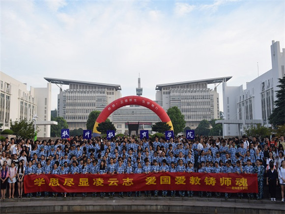 最后,学生代表汤婉宁同学上台带领全院同学宣誓,学高为师,身正为范,贡献祖国教育事业,为实现中华民族伟大复兴奋斗终生。