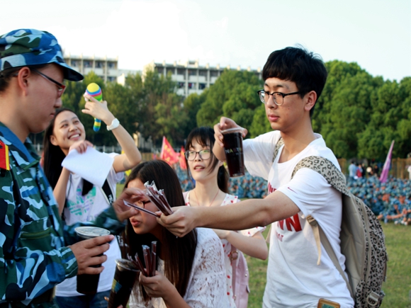 各学生会社团管理中心带领的各大社团,分团委、红烛青协和德馨心理气象站给辛苦军训的16级新生进行了慰问演出,辅导员过超老师、教官和同学们席地而坐,观看演出。