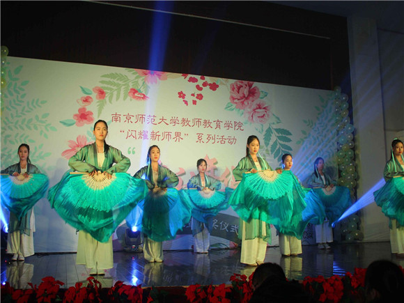 抚掌间从容应对,舞起时一展芳华。篮球队也以游戏的形式呈现,让同学们感悟运动的魅力。你来我往,你争我抢,球在同学们的掌间灵活自如。礼仪队和灵动舞蹈社都以舞蹈的形式,向大家展现师院学子的青春气息。韵律感十足的舞曲,配上俊男靓女的热舞,将晚会的温度升到了最高点。在社团表演之余,更有十佳歌手诸隽文、朱贵新登台表演助阵。他们带来了《郑钱花》和《失恋阵线联盟》两首诙谐幽默的歌曲串烧,为校园文化注入新的力量。