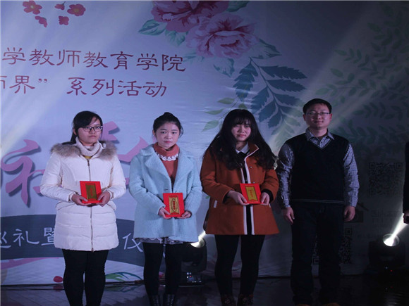 优秀社团。在妙笔写青春师范生风采展示中获得一、二、三等奖的同学代表首先上台领奖,殷志伟老师为他们颁奖。而获得星级社团的静言汉服社、舞蹈社、阿卡贝拉社、辩论队、礼仪队和闲庭学社的同学代表接着上台领奖,由孔晖老师为他们颁奖。随后,大家进行了合影留念。