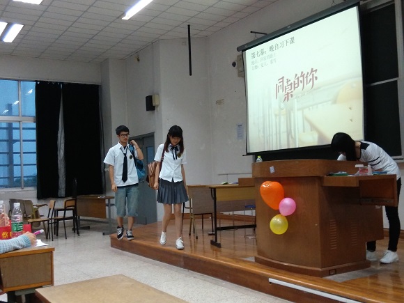 比赛伊始,主持人张青同学宣布比赛流程,由参赛队伍依次上台展示各自剧作。首先上台展示的是由13级思政组成的“花儿与少年”队,他们以深情的“执子之手,与子偕老”感动了在场的同学们。接下来的队伍中有演绎经典组合S.H.E的不凡经历,有追忆与同桌的你的青涩往事,有展现感人母爱的幽默故事……各代表队都充分展现了各自的风采,现场掌声不断!最后,由13级汉语言组成的“六人行”队以明国时期唯美的爱情悲剧故事震撼收场。
