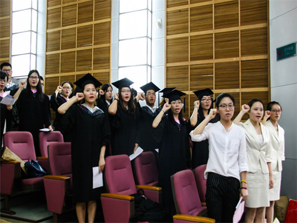 最后,全体毕业生在袁思嘉同学的带领下庄严宣誓,表达了毕业生们铭记母校校训,谨遵师长教诲,维护母校荣誉,承载南师精神,肩负时代使命,报效祖国人民,为实现中华民族伟大复兴奋斗终生的决心和愿望。