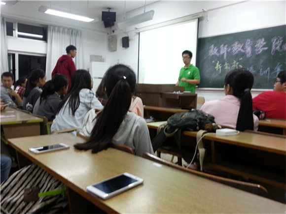 辩论队领队——14级刘克家同学为15级新生进行了基本的辩论培训,以帮助没有接触过辩论的同学更好地参与此次比赛。此次活动,不仅仅有15级40余位新生出席,还有学生会社团管理中心主任吴月同学,教师院辩论队14级全体队员,13级姜子芸、何斯薇和薛梓文同学也出席了活动。