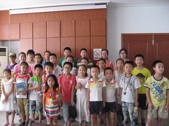 2点整,队员们各自作了简短的自我介绍,活动准时开始了。作为本次活动的主持人,徐云燕首先介绍活动环节:一共分为三个环节——行星知识教学及展示,你比划我来猜和行星知识有奖竞答。小朋友们一听说有奖品,更加热情了,纷纷举手。考虑到年纪差异,小朋友们被随机分为两组,分别由徐云燕和周舒负责行星知识的教学,由徐江涛负责秩序的维持和摄像。令队员们吃惊的是,小朋友们大多数对8大行星已经了如指掌,有的小男孩还能准确地说出各个行星的特征。但是,几个一年级的小女孩对行星就不太了解,大一点的小朋友会耐心地教她们。分组教学完成后,徐云燕又领着大家学习了八大行星的英文名字,小朋友们别提多认真了。