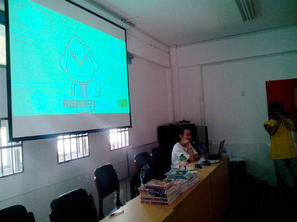 下午“彩虹”社会实践小分队的队员卢立娇先为学生们放了一部电影——《放牛班的春天》,这部影片进一步的教会了学生感恩的重要性,并告诫了学生们人要常怀一颗感恩的心才能以积极的心态去面对生活的一切困难与挫折。接着卢立娇又仿照影片中老师的教学形式教学生们学唱《鲁冰花》,学生们都很努力认真的在学习唱歌。在这次教学成果展示的过程中,朱元东、刘蕊、薛宇翔、刘柳、张亚楠五位小朋友表现尤为出色,并获得了“彩虹”社会实践小分队为他们颁发的奖状。