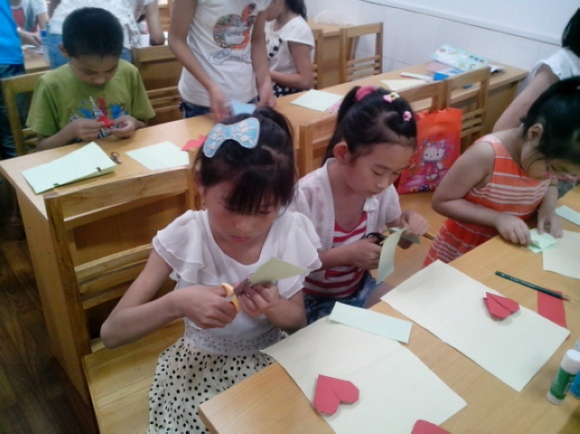 紧接着第二节课由“彩虹“实践小分队的队员张冉和刘青教学生们制作感恩贺卡,制作贺卡激发出了学生浓厚的兴趣并将班级的活动气氛推向了高潮。学生们每个人都热情高涨,在制作出的精美的贺卡上写下对父母的祝福以及感恩的话语。