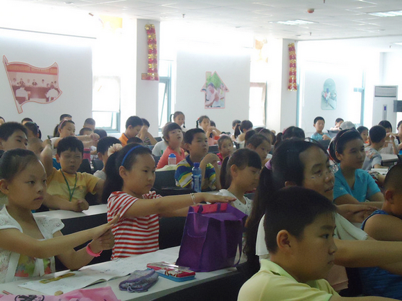 据了解,参与本次夏令营活动的儿童共计九十多名,且受教育程度以小学阶段为主。针对此类对象,“百善孝为先”的主讲人同时也是南师大红烛青协“幼吾幼以及人之幼——关注亲子关系与教育”暑期社会实践小分队成员的鲍尚雯和赖佳佳两名同学便以大型动画片《中华弟子规》的主题曲做为开场,既直切主题又一下子吸引了孩子们的注意力,可谓一举两得。