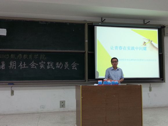 2013年暑期社会实践动员大会于仙林校区学正楼501教室隆重召开,院团委书记支景老师、10级辅导员李晓亮老师参加了此次动员大会,为同学们答疑解惑,偌大的教室座无虚席,同学们都受益匪浅。