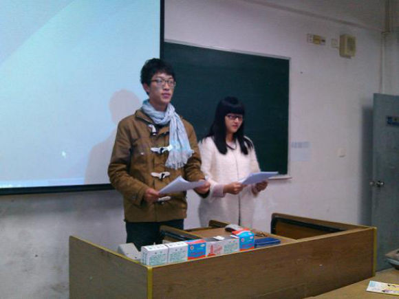 同样是8名同学演讲过后,比赛又小小的告一段落,在主持人的带领下,现场播放起各班拍摄的用于展示的VCR。镜头前一张张热情洋溢的笑脸,一个个埋头研读的身影,让我们感受到了教师院12级各班的良好学风和团结有爱的班级氛围。VCR过后,各班代表又就班级展板做了简洁生动的介绍,引得在场的观众听的越发兴致勃勃起来,现场进入小高潮。