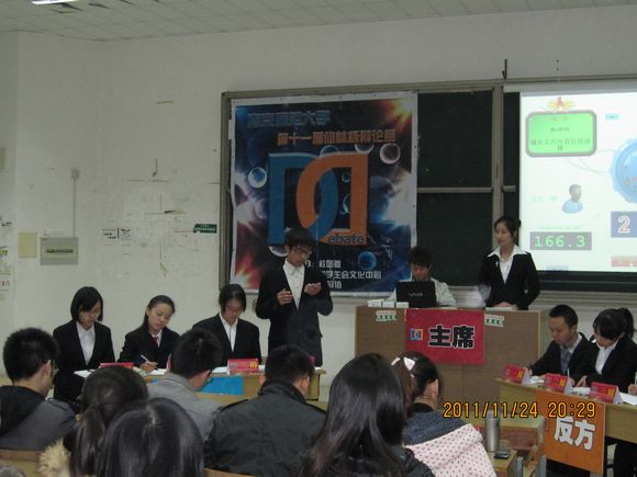 11月24日晚八点十五分,南师大学正楼201教室,仙林杯辩论赛复赛正如火如荼地进行着。