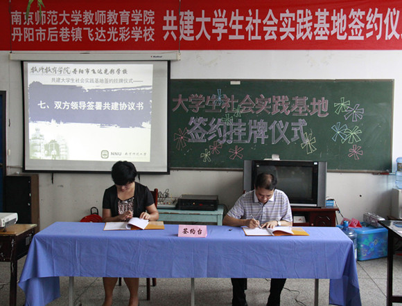 与丹阳市后巷镇飞达光彩学校共建大学生社会实践基地签约挂牌仪式在光彩学校隆重举行。丹阳市后巷镇副镇长蒋勤花、后巷镇实验学校校长严冬彪和我校黄色视频