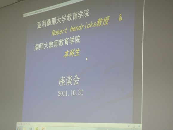 这次交流采用全英文对话形式,参加交流的学生代表20名分别来自11级和10级英语师范班,满头银发的Hendricks教授西装革履、一丝不苟的打扮和亲切善意的笑容,很容易让人对这位标准的绅士产生敬慕之情。