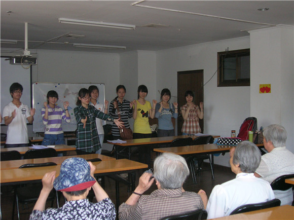 在大家跟老人们聊天的过程中,一位老人引起了大家的注意。老人毕业于我校前身南京师范学院,学习的专业也是教育,曾经当过老师。在聊天过程中,同学们了解到老人已经88岁高寿了,但是精神状态很好,她告诉大家生活中要保持乐观的心态。同学们静静的倾听,收益颇深。活动在温馨轻松的氛围中结束。