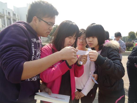 举行了“循师问道”智勇冲关大赛。作为“红六方面军”,数学与应用数学(师范)班的六名同学们参加了这次比赛。其中,班级文体委员季诣奉同学为队长,史慧宁、沈婷、李颖慧、王凯和樊惟媛为队员。这次比赛以闯关为元素,诗词作为闯关线索。从第一站“瑞金”开始,六名同学必须破解线索同时排遍包括麻匪等万难,来到下一个关卡,并以此类推,最终回到瑞金。比赛之前,数学班的参赛队员和志愿者们参与度很高,都非常积极地投身于这次比赛中。