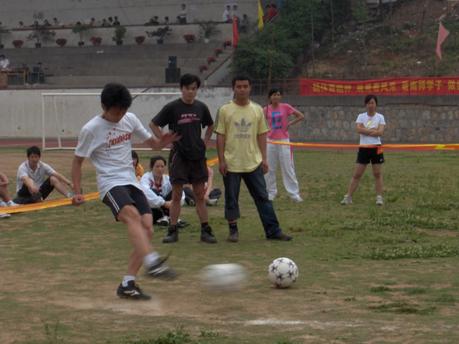 的风采。师生的共同参与,亲人的大力支持,朋友的呐喊助威,每一刻都让我们感动。在两人三足跳的趣味比赛中,蔡院长和郭勇的配合很默契,获得了第四名的好成绩。下午的篮球接力赛和足球射门虽然没有取得名次,但是看着队员拼搏的气势,听着大家齐心的加油声,精神上早已满足了。这就是运动会带给我们的激情和热情。