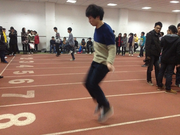 13日,代表教师院参赛的10名长绳选手集中训练,悉心研究队形战术,为比赛作着充分准备。15日早晨9时,选手们准时来到体育中心室内跑道,等待检录。预赛中,选手们配合默契,三分钟内从未中断一次,整场比赛一气呵成,赢得了裁判和观众的一致好评,同时以预赛第一的成绩毫无悬念地进入下午的决赛。