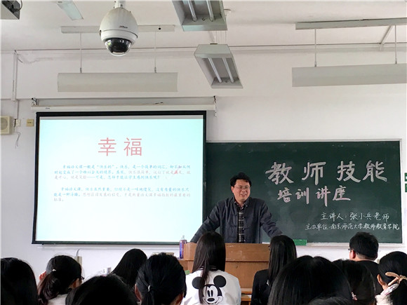 大家把对张小兵老师的敬佩之情化为阵阵掌声。讲座结束后,张老师积极解答同学们在模拟授课中遇到的疑惑,此次“模拟授课”培训讲座让大家受益匪浅。