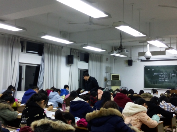 14级辅导员殷志伟老师亲临现场查看同学们的考试情况。本次考试由黄色视频