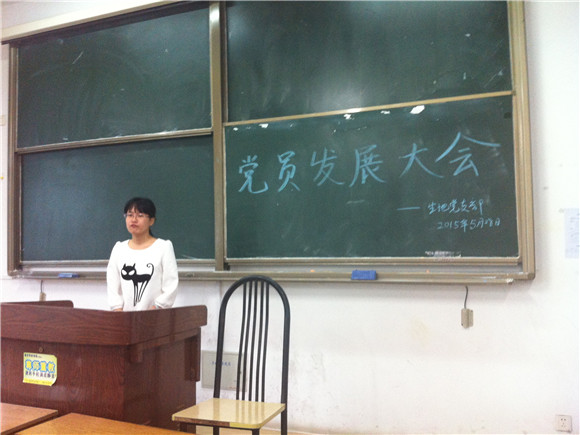 最后,生地党支部书记李司敏同学宣布了此次支部党员发展大会决定吸收杨唐惠子等五位发展对象成为中共预备党员的决议。
