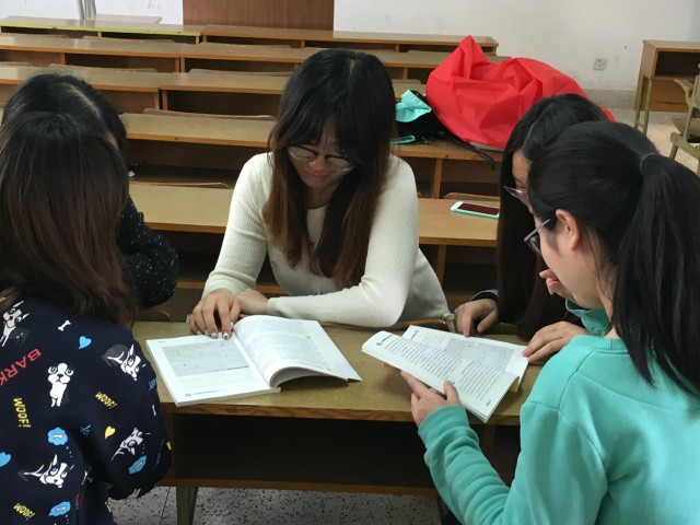 14英转班吴忠萍,胡莹,唐艺芸,明月,孙玲玲五名同学于学正楼303进行中党小组学习活动,深入学习并贯彻党的精神,加强党性修养。