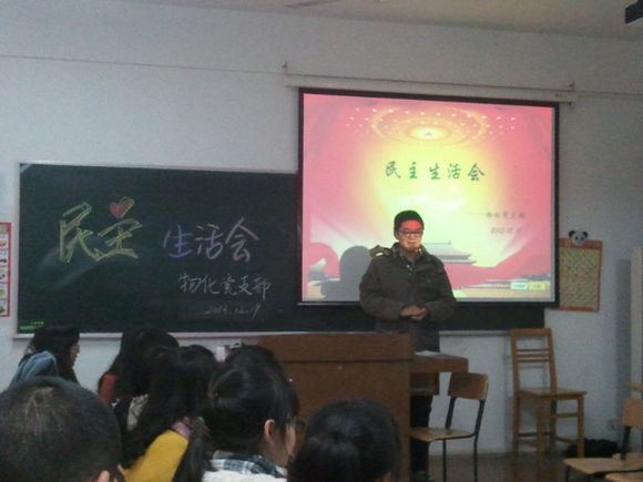 本科生物理化学联合党支部在学明楼216教室召开了本学期第二次民主生活会。会议围绕“教育”议题进行民主讨论,支部党员积极参与,深入探讨,会议取得了预期的理想效果。支部成员陈怡、王玮主持了此次会议。