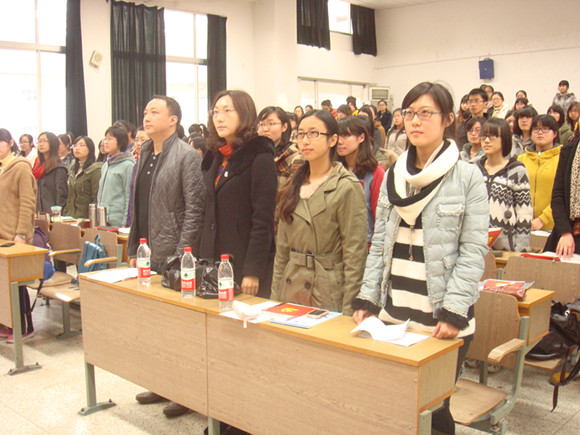紧接着,此次党校高级班的第一讲正式开始。岳书记就为学生党员们讲授了马克思主义中国化的含义及其历史脉络。岳书记通过生动的历史事件向学生党员们阐述马克思主义中国化的成果和历史过程,史料丰富、知识性强,严谨细致地介绍了具有中国作风和中国气派的中国化的马克思主义。在讲到毛泽东思想和中国特色社会主义理论体系时,岳书记结合正在召开的党的十八大进行对比说明。并且鼓励在场的党员们实事求是、与时俱进,通过努力学习、实践和创新,为党的建设多做贡献。
