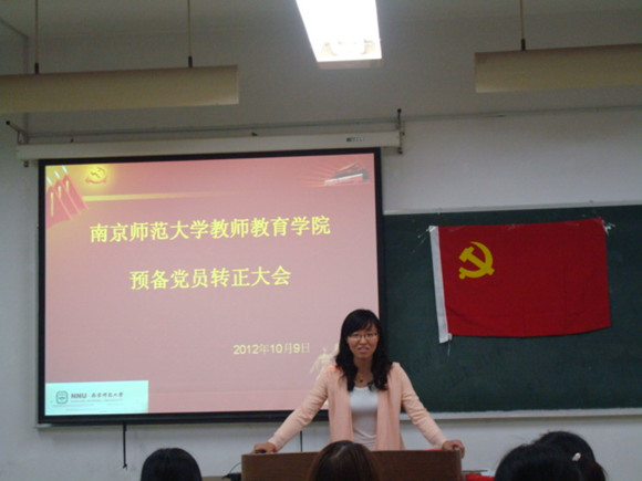 学生党支部在学明楼413教室内开展了关于谢婷婷同学等10位预备党员的转正大会。此次会议,由党支部组织委员李颖慧同学主持,学生党支部分管老师翟云秋出席会议。