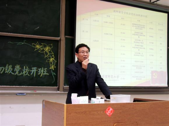 党委书记张杰老师、党委副书记朱冬梅老师,团委书记支景老师及辅导员李晓亮老师出席了本次活动。本次活动由支景老师主持。支景老师介绍了教师院分党校成立的相关工作、党校课程安排及要求。