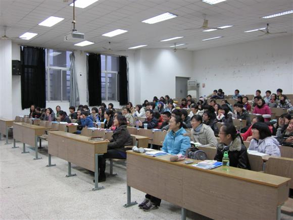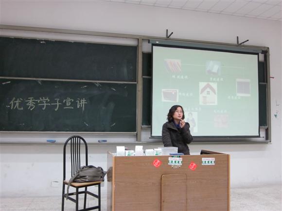 第二部分支景老师就两个方面作了具体阐述。首先是班级建设方面,具体介绍了十佳百优班级评选的细节,包括班风建设,学风建设,制度建设,文化建设等方面,以09级学长的申报资料为典范,期许教师院的10级也能涌现优秀班级。随后是团支部建设方面,就思想教育,组织建设,活动开展,特色工作四小点分述,理论性与实践性的结合给同学尤其是团支书以启迪,同学收获颇丰。