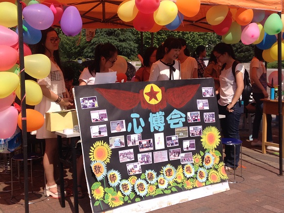 第六届“5•25心博会”在仙林校区敬文图书馆前的世纪广场上举行,此次心博会由校心理健康教育咨询中心主办、校心理气象站与各院系分站承办,主题是“心的交流•爱的加油”。整个活动过程中,广场上人头攒动、热闹非凡,教师院“德馨”心理气象站积极响应了此次活动。