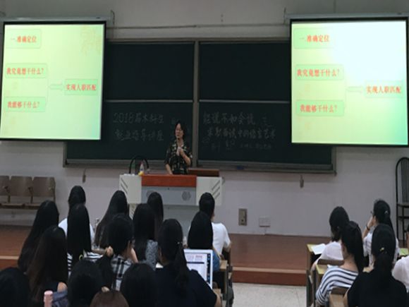 在仙林校区学正楼402举行了2018届本科生就业指导系列讲座:笑傲职场——漫谈就业心理与面试表达。本次讲座由心理学院党委书记周红老师主讲,2018届毕业班全体学生参与本次讲座。