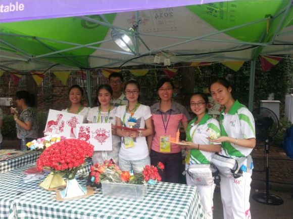 亚青盛会,难忘!激动人心的时刻终于到来了,亚青会“青年的节日”项目的现场十分热闹。但是孩子们在白天搭展架、布置场地的辛苦我是看在了眼里。我请了我们学校的志愿者帮我们项目小组拍了个合照,我也把照片存在了我的电脑里。为期三天的活动时间说长不长说短也不短,我们共同经历了大雨、跳电等一系列的问题,但我们还是顺利完成了任务。