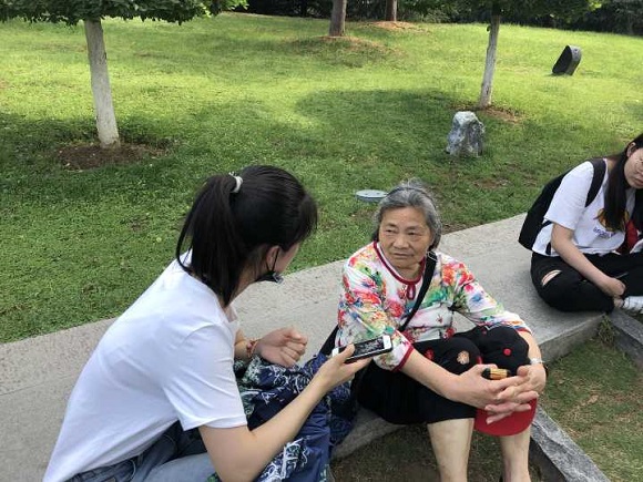 在对老年组的采访中,队员有幸采访到了四位老人,他们都来自其他省市,有的是子女在这里工作,有的是专程前来,怀揣着对这段红色记忆的敬重和些许好奇,参观侵华日军南京大屠杀遇难同胞纪念馆。其中,有一位来自四川的老奶奶给人留下了极深的印象,这位老奶奶已八十高寿,身体依旧健朗,也十分健谈,在谈到来参观侵华日军南京大屠杀遇难同胞纪念馆的目的和感想时,老奶奶难以控制地情绪上的激动,控诉着日军的暴行,反复用“残暴”一词来形容这段历史。老奶奶还说,她是从苦日子过来的人,知道现在的生活有多么幸福,更知道如今的生活多么来之不易,年轻人是未来的希望,不要忘记历史,不要忘记奋斗。老人家的话透露出浸润在丰厚深刻的经验中的智慧,发人深省,为之动容。