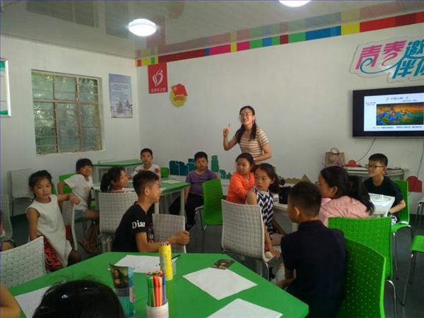 党支部成员来到六合区龙袍街道青少年活动中心的第三天,继前两日的数学与语文课之后,我们为当地的孩子们带来了英语课“I LOVE U ,MY FAMILY”和美术课“我是天才小画家”。学生们一早就到达了上课地点,一改前两日的羞涩,在上课开始前便围着老师们聊天,问问题。