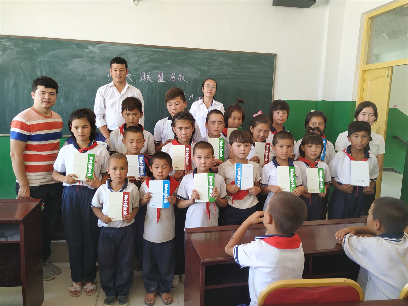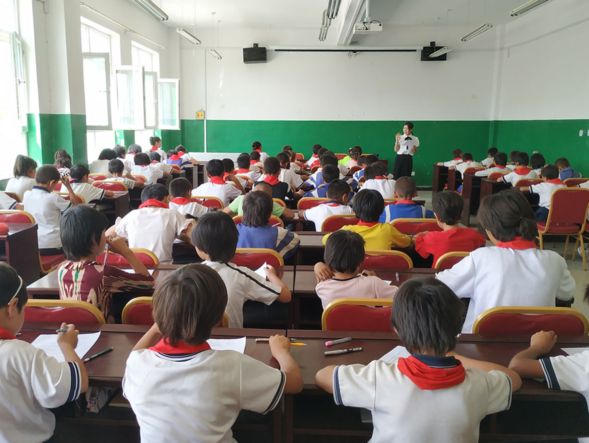 8月1日,恰逢琼库尔恰克乡24村小学有支教的需求,在全校老师的陪同下,实践团在24村村小进行实地调查国语推广情况,并向三好学生与家庭困难学生赠送公益文具物品。
