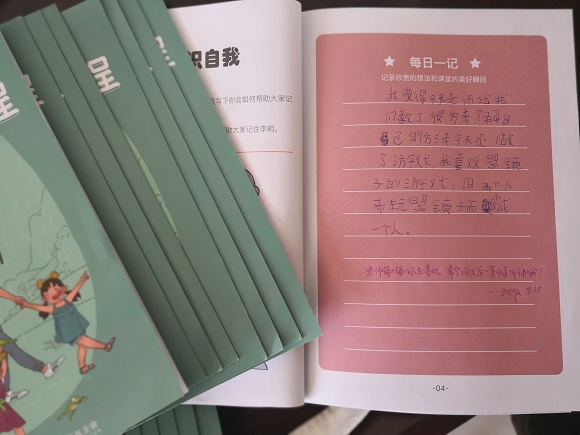 在课堂最后,同学们写下了“每日一记”,不少同学表达了对心益课程、对沈老师的喜欢,沈老师认真批改每一份日记,并写下了鼓励与赞许。