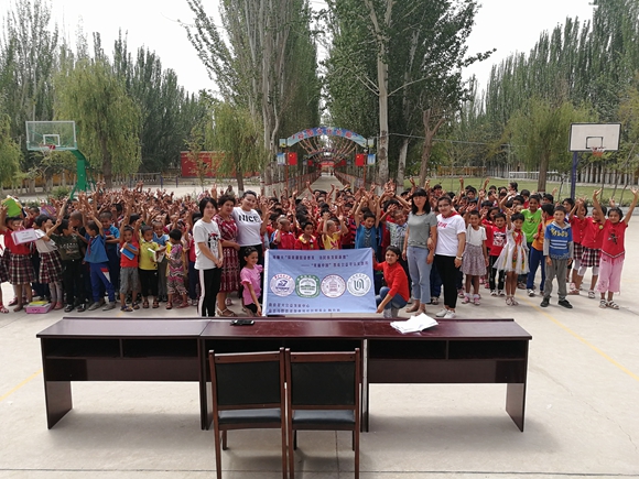 “美丽中国”教育公益寻访实践团前往新疆喀什地区疏勒县罕南力克镇卡木其瓦普小学,了解当地的国语教学情况,并为部分家庭困难的学生发放鞋子,给各年级优秀学生赠送本册等文具用品。另外,驻罕南力克镇6村工作组徐翠霞和杨磊同志前来视察并参与。(活动提供的公益文具用品由南京星火公益发展中心,以及南京栖霞区马群馨康苑社区陶玲莉女士赞助购买,鞋子由团队成员阿尔祖的哥哥穆合塔尔赞助,共17双(男9女8))