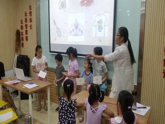 第一节课的主题为美国。课堂伊始,老师向小朋友们强调了课堂纪律,帮助孩子们养成了规范听课的好习惯。接着,老师提问小朋友们幻灯片里具有美国特色人物的名字来引入本节课的主题。小朋友们思路敏捷,积极举手回答问题。其次,老师向小朋友介绍了美国的国土组成,小朋友听得很认真也很活跃地回答问题,回答问题的小朋友们也获得了老师的肯定。紧接着,老师给大家介绍了圣诞节,万圣节等极具西方特色的节日,并配以动画片,让小朋友们对此有更深的认识。最后小队成员们带领小朋友们们一起画美国国旗,孩子们拿起手中的画笔,画出自己眼里的国旗,每一位小朋友都是最棒的小画家。