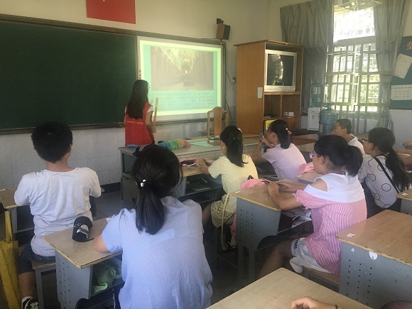 一大早,迎着朝阳,志愿者老师就来到寨桥小学的大门口准备接学生去阶梯教室开始早自习。同学们陆陆续续走进校园,礼貌地和志愿者老师打招呼并进行签到,然后径直前往阶梯教室做作业或阅读。上午八点半正式开始上课,同学们有序进入教室等待。今天的课程有文物博览,阅读交流,趣味数学,英语——电影以及世界建筑鉴赏,每一节课志愿者老师都给予了充分的备案和极大的热情,所以同学们在课堂上积极讨论和发言,反响热烈。芮周银老师带领同学们阅读了沈从文先生的《腊八粥》,并让同学们谈谈自己对人性美和风俗美的理解,有很多同学都提到了自己的宠物,表达了自己的喜爱与爱护之情,随后还探讨了中国传统节日美食,采用飞花令的形式邀请同学们发言,同学们踊跃发言,都向大家分享了自己所知道或喜欢的美食,轻松的交流形式创造了热烈的课堂氛围。此外的世界建筑鉴赏给同学们带来了世界各地的名建筑图片并且介绍了它们的起源和有名故事,同学们也谈论了自己去过的名胜古迹,大家都很欣喜。