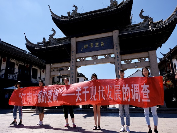 7月15日早晨,江南古镇调研小队从客住所出发,前往著名的中国第一水乡——周庄,开始一天的调研活动。