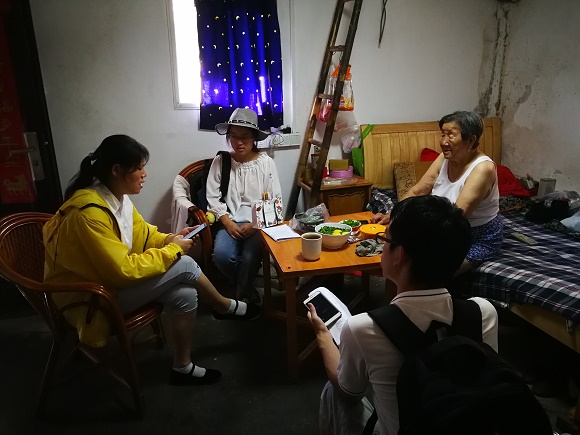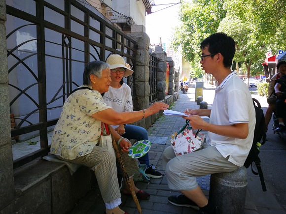 7月18日,"寻觅金陵古音"社会实践小分队在建邺区以及秦淮区一带进行了一天的调研。本次调研内容主要针对于人员构成复杂的社区中南京话的发展情况以及老年南京人中南京话的使用情况。本次调研获得了当地居民的热心帮助与配合,了解了许多濒临灭绝的字词的读法,收获颇丰。