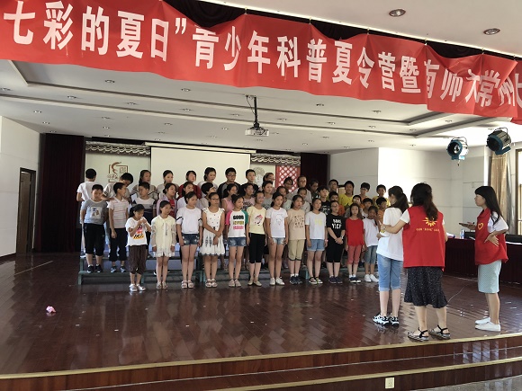 一大早,志愿者老师一如既往地站在寨桥小学的大门口等待同学们的到来,签到之后带领她们前往阶梯教室自习。同学们礼貌向志愿者老师打招呼问好,新的一天以一句问好,一个微笑开始。上午八点半正式开始上课,今天的课程包括趣味数学,安全讲座,诗歌鉴赏以及结营前的排练。第一节数学课上志愿者老师引导着同学们学习简便计算和定义新运算,大家对新知识极为感兴趣,踊跃发言,课堂氛围热烈。接下去的红十字会安全教育讲座就地震及地震时发生的踩踏事件,火灾及如何逃生,夏日游泳溺水及如何理智见义勇为等方面由主持人生动向同学们进行讲述,期间还进行了火灾逃生小实训,通过事实表明遇到火灾不一定强求要用湿毛巾掩住口鼻,应该根据实际情况进行抉择,最后还给每个同学下发了一本常见灾害小常识,同学们经过阅读后进行了知识抢答,同学们积极抢答,踊跃发言,并且全部正确,表现了同学们对自身安全的重视。午休过后的第一节诗歌鉴赏课上,老师向同学们展示了一些经典的短诗以及教同学们如何自己写诗,同学们纷纷拿起笔来,写下自己的所思所感。然后,在老师的指导下,同学们开始了结营前的第一次集体排练——大合唱《水调歌头》,同学们在指挥下放声歌唱,淋漓尽致地表达自己,排练效果甚是不错。