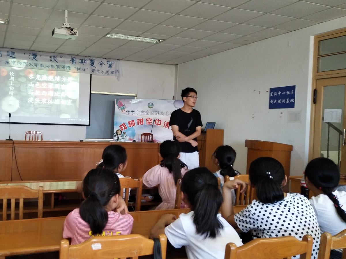 下午的第一节课王嘉斐老师讲述了植物与中国传统诗词的关系。平日里美丽动人的海棠、虞美人出现在诗词里被赋予了新的含义,萱草、橘子也有着属于中国传统的特殊意义,这和第二节喇舜尧老师的诗歌意境创作交相辉映,取得了不错的效果。文学院的喇老师对诗歌意境有自己独到深刻的见解,加上《中国诗词大会》精彩剪辑的视频,带领孩子们领略了美丽的诗歌世界。
