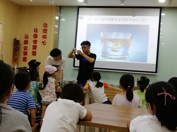 趣味科普课堂队的暑期社会实践活动进行了第四天的活动。在这次课堂中,小朋友了解了“化学”的概念,并且通过看动画短视频、做简单有趣的小实验来理解不同物质在水中的溶解程度,进一步认识 “溶解”的概念。在看视频和手工的过程中孩子们边体验边思考,学习到了很多有趣的科普小知识。他们的知识体系、认识能力也逐渐得到完善和提高。